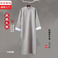 囝君佳中式伴郎服相声大褂男士演出服装中式长袍民国风长衫舞台快板表演 灰色 175, 黑色
