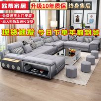 欧蒂家居沙发现代简约轻奢免洗纳米科技布艺沙发实木沙发客厅大小户型家具 七件套+茶几电视柜(配4小凳子) 【弹簧乳胶+松木框】加厚猫抓布, 七件套+茶几电视柜(配4小凳子)