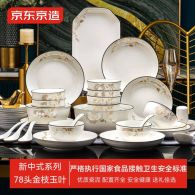 京东京造 碗盘餐具整套 乔迁瓷器碟套装家用【礼盒】金枝玉叶 78头, 繁华似锦餐具套装45头