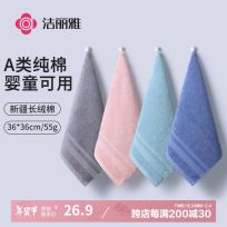 洁丽雅(Grace)A类方巾4条 纯棉柔软吸水擦手巾 宝宝儿童毛巾加厚洗脸巾 55G/条, 【A类六层纱布】方巾 4条